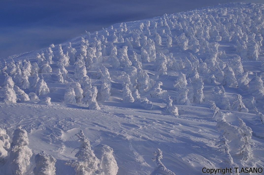 凍てつく寒さの夕陽を浴びて山へ帰るモンスターの群れ