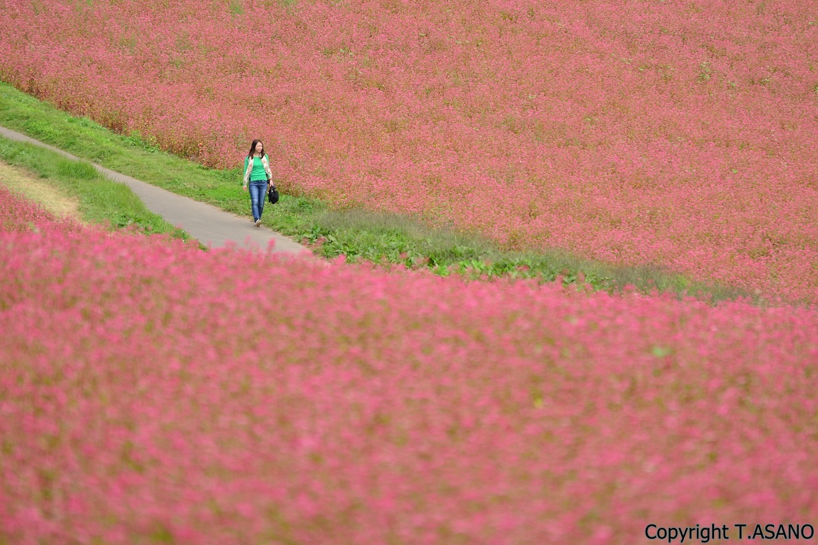 赤いそば畑を秋の風を感じてのんびりひとり旅