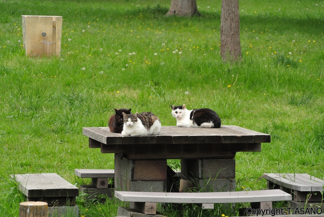 暖かくて気持ちいいね、ハイ笑ってぇ
