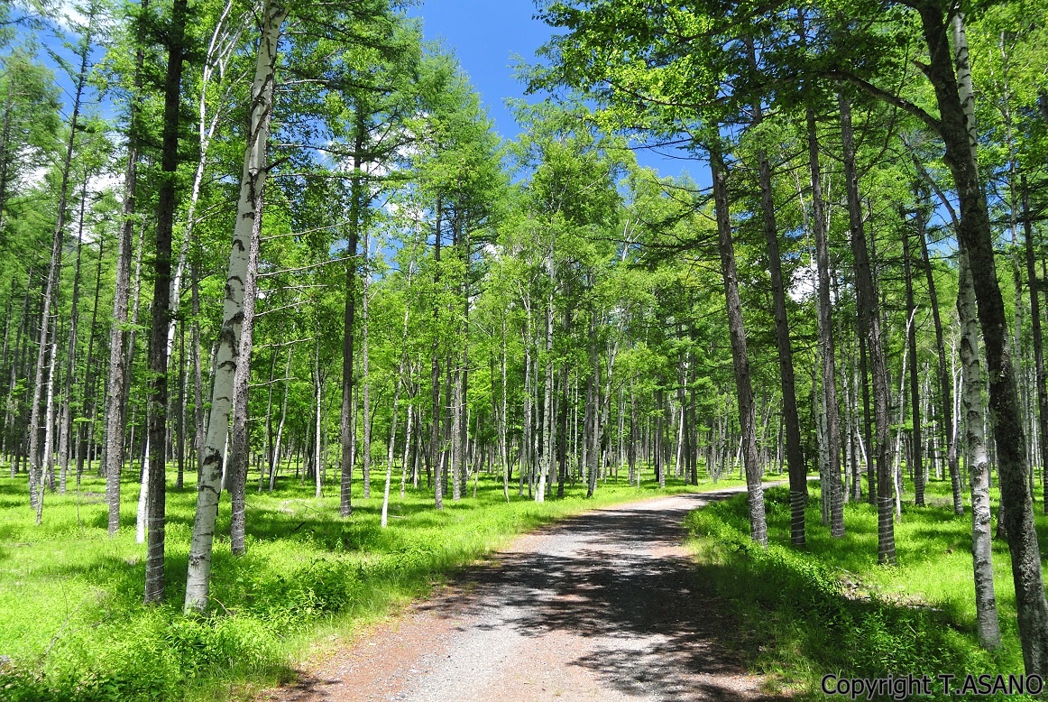 緑の空気をお腹いっぱい吸って、どこまでも続く白樺の小径を散歩中