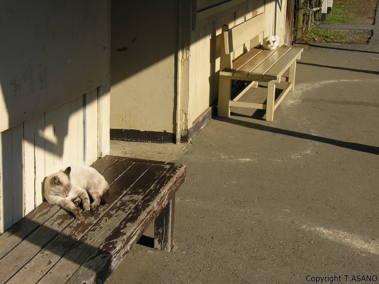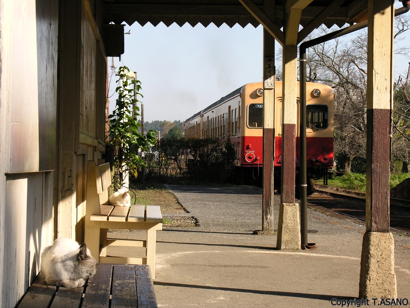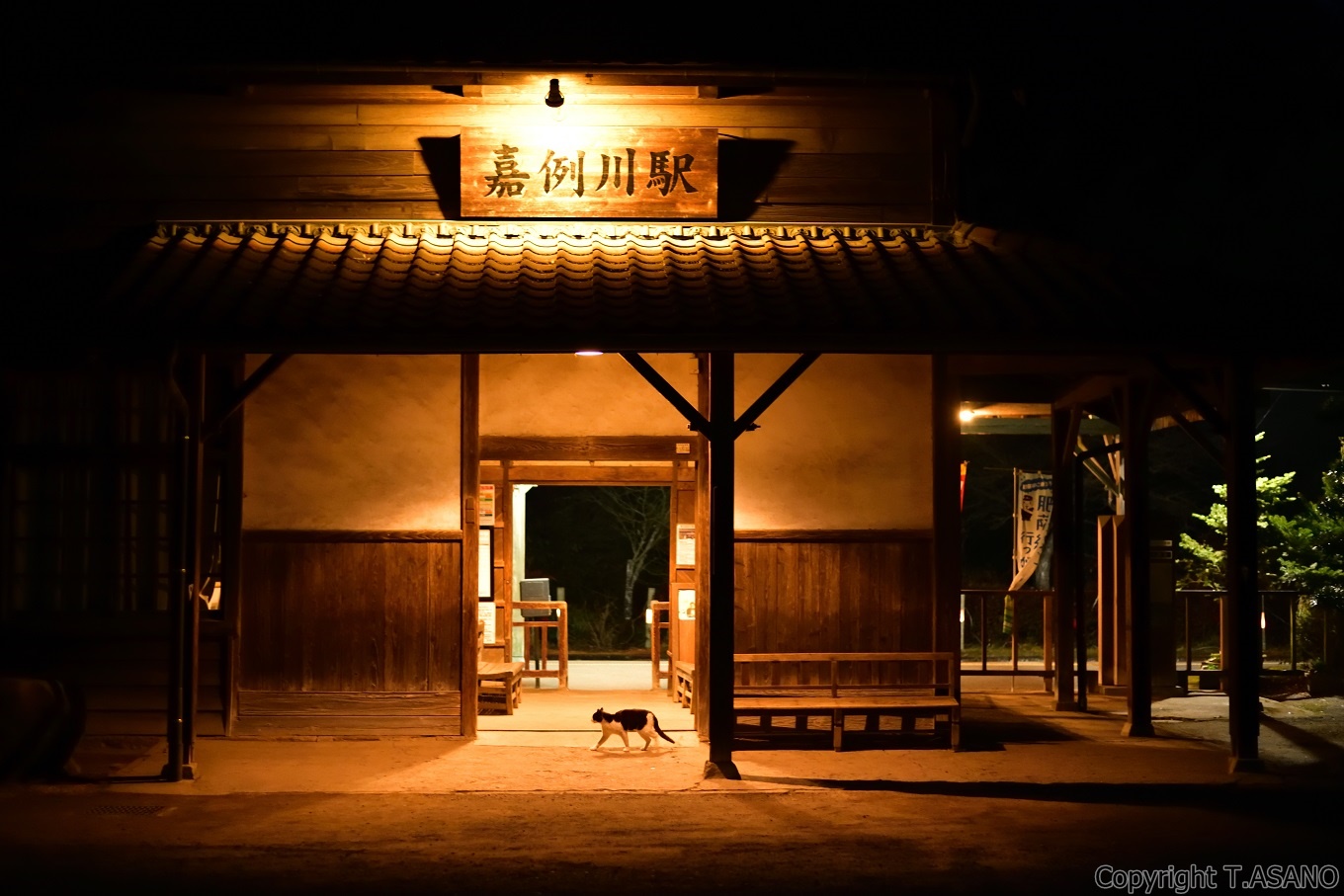 古い駅舎に灯がともると猫ちゃんもご帰宅