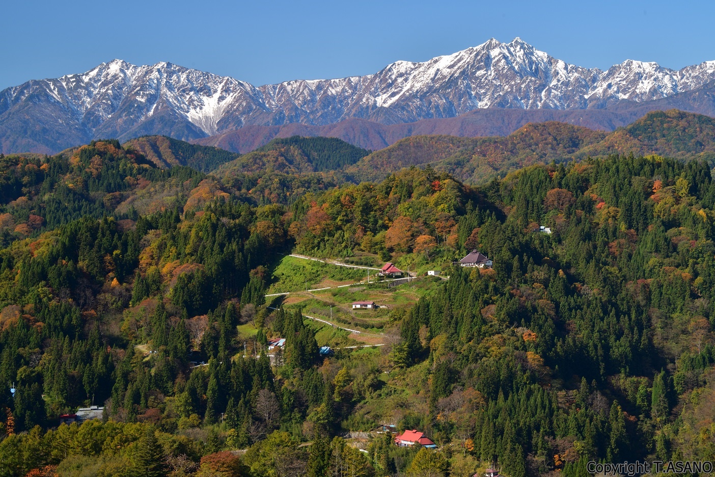 北アルプスを望む山あいの絶景集落