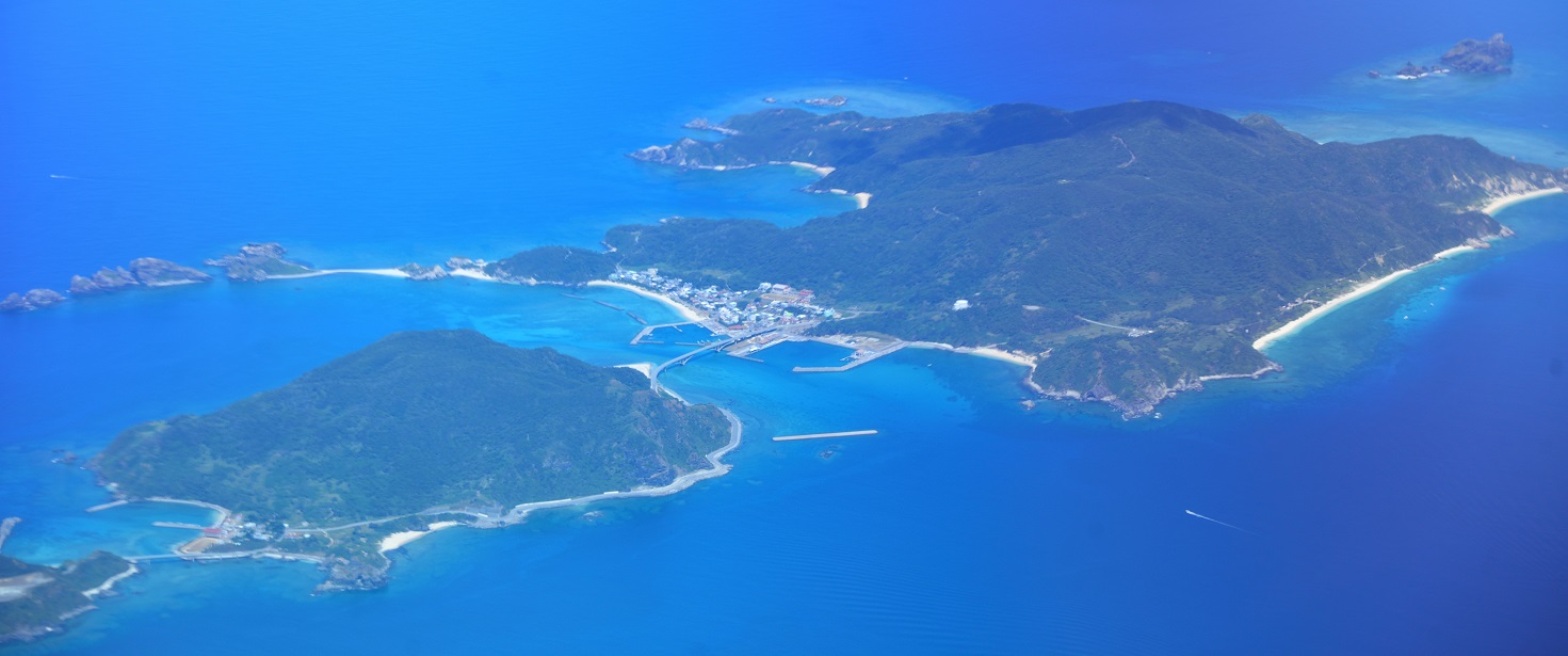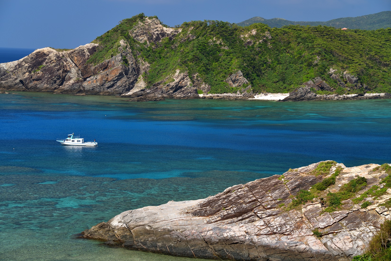那覇から高速船で30分マリンスポーツが人気の阿嘉島に到着する、慶良間諸島の南側に位置して慶留間島と橋で結ばれている。