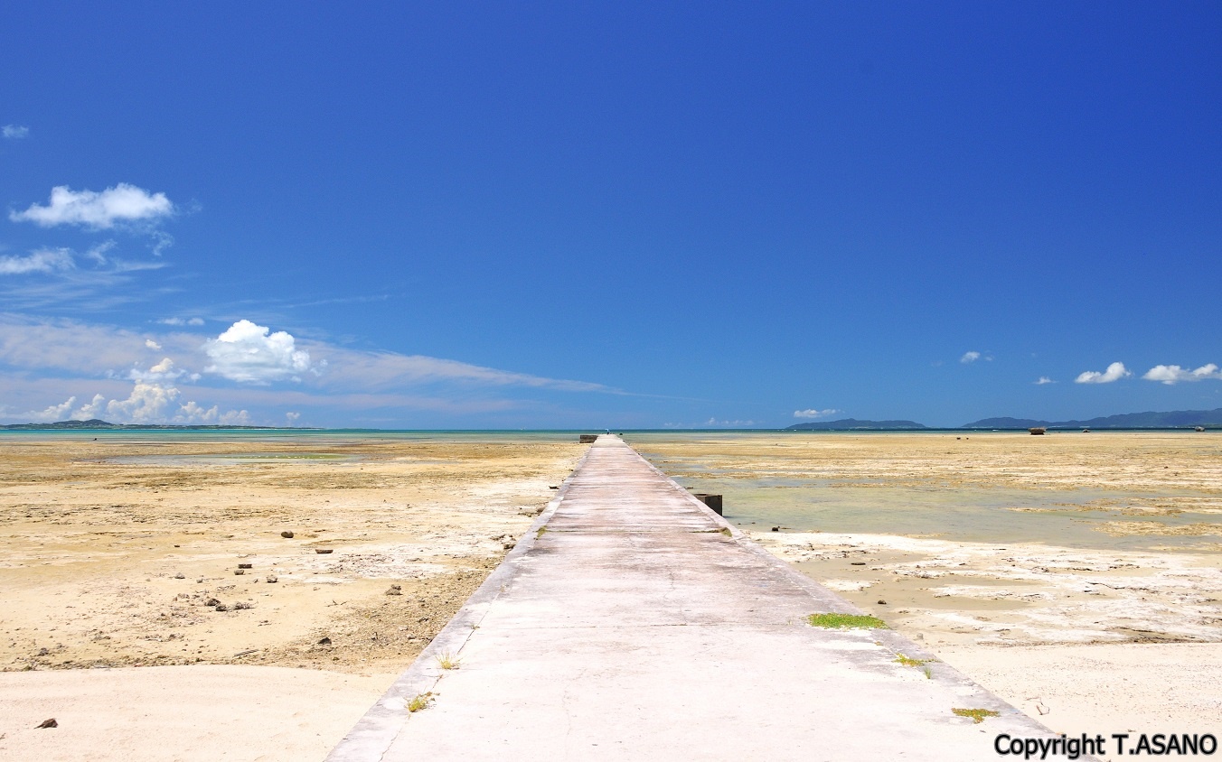 どこまでも続く伊古桟橋、なんでこの島にこんな立派な桟橋がいるのかな、もしかしてこの干潮?