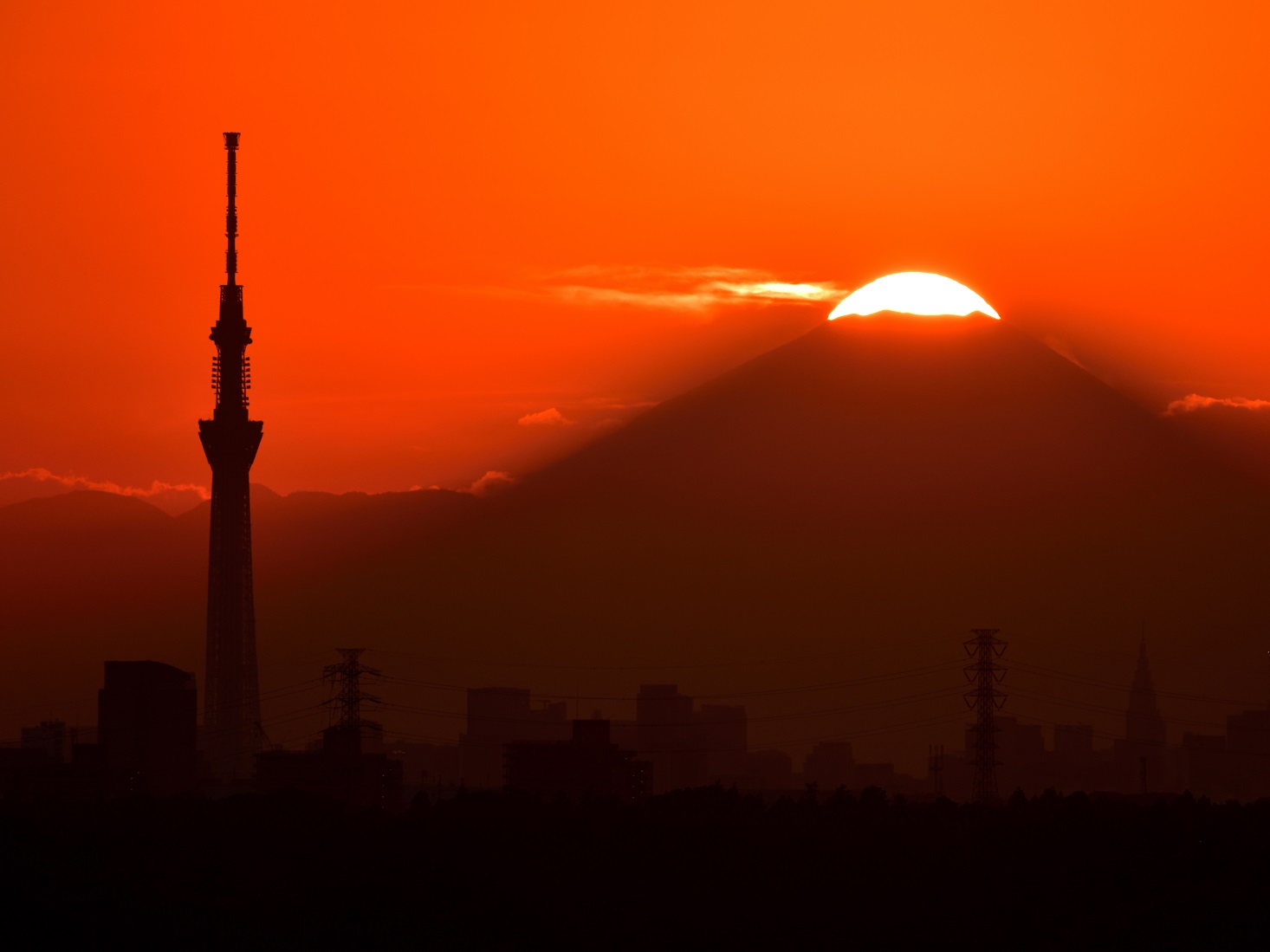 11月2週 富士山に沈む夕日(千葉県 鎌ヶ谷市)