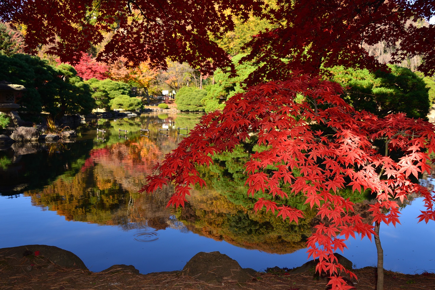 11月3週 借景と水鏡ともみじ(岩手県 盛岡市)